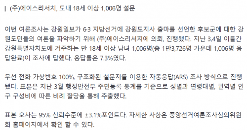 [6·3지선 여론조사]2026 지방선거 강원도지사 여론조사…어떻게 조사했나 작성자관리자 등록일 26-04-11 조회191회 출처 강원일보 보도일자 26.04.06 본문 https://n.news.naver.com/mnews/article/087/0001184932?sid=100 [6·3지선 여론조사]도민 10명 중 8명 “투표하겠다”…여당 지지층서 더 높아 목록